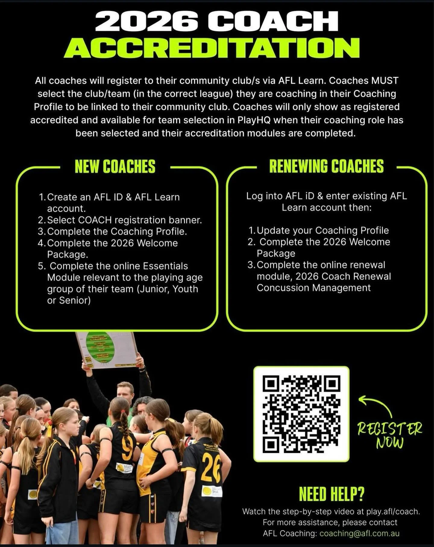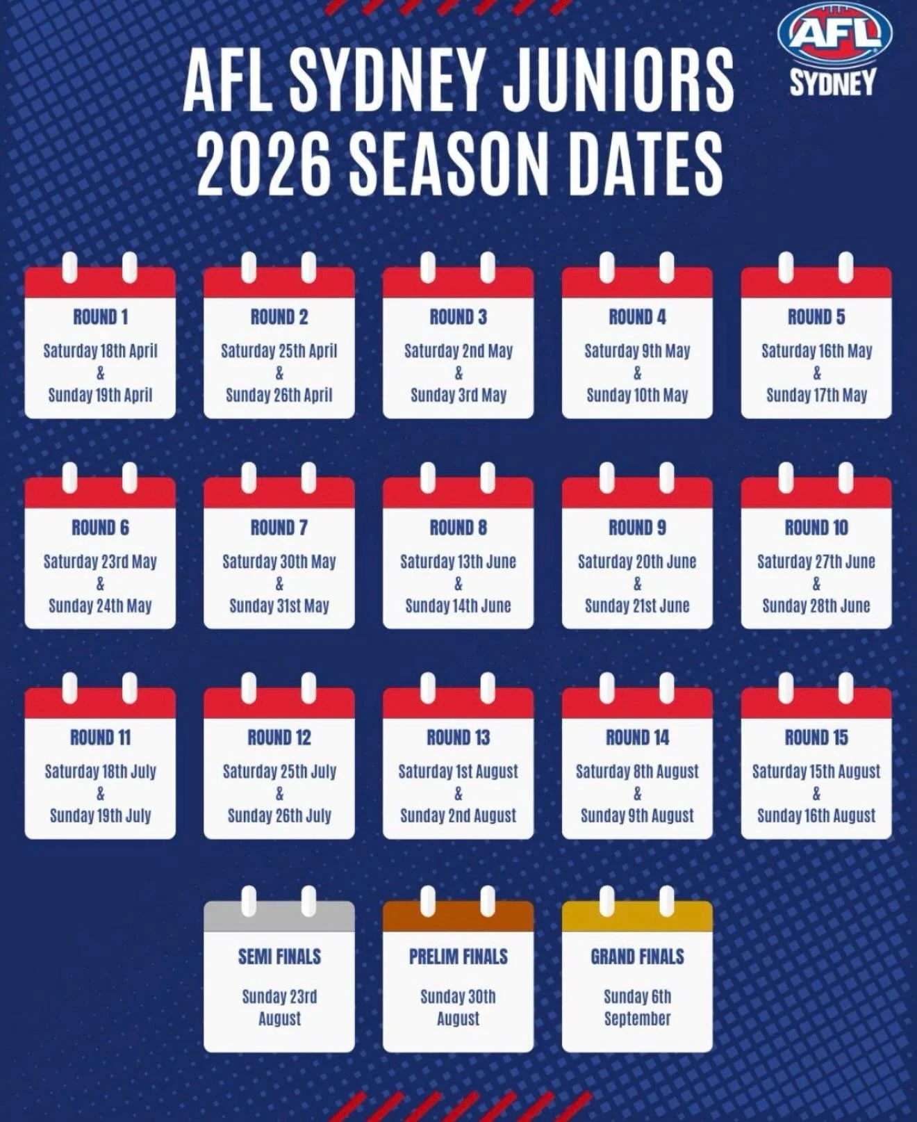 We pride ourselves on being a family-oriented Club, teaching young AFL players skills, sportsmanship, team work and Club values. Ages 5 to 17, boys and girls, we welcome everyone to our Club regardless of experience or ability. Come and have a go!